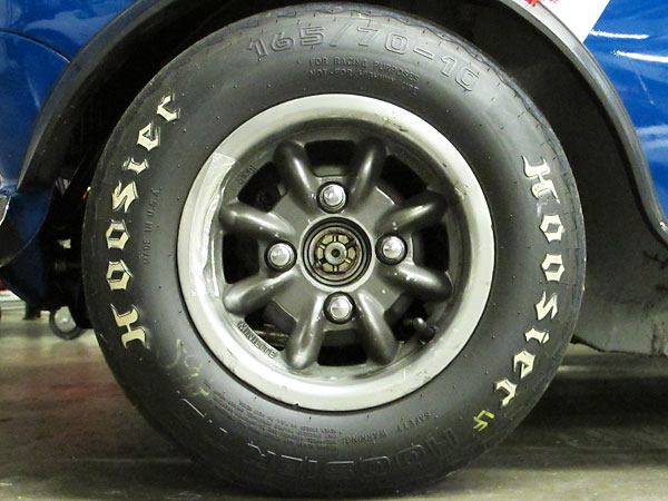 Wheels/Tires: genuine Minilite 8-spoke ally wheels (10x6), painted Anthracite Grey. Hoosier T.D. tires (165/70-10)